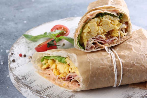 Scrambled Egg, Cheddar Cheese, and Turkey Ham Wrap